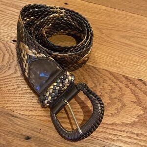Amanda Smith Metallic Bronze Pewter Gold Snakeskin Effect Woven Wise Belt XL
