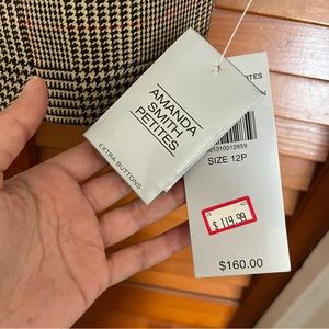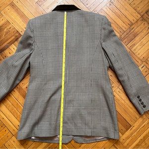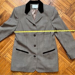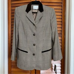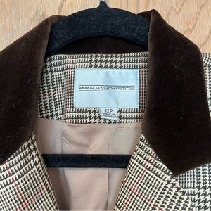 Amanda Smith Petites Preppy Houndstooth Plaid Boxy Blazer Velvet Collar Wool Blend