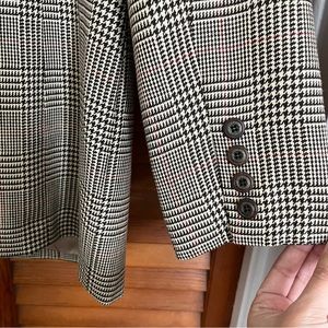 Amanda Smith Petites Preppy Houndstooth Plaid Boxy Blazer Velvet Trim Wool Blend