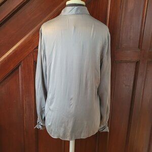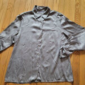 Amanda Smith Pewter Gray Long Sleeve Silk Button Up Large