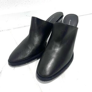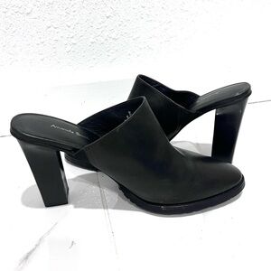 Amanda Smith Smooth Leather High Heeled Mules Size 9. Sleek black ankle booties. Slip-on design. Perfect for versatile styling.