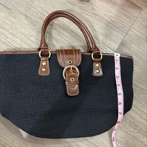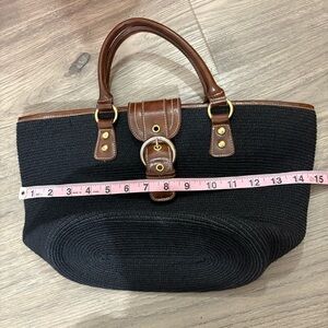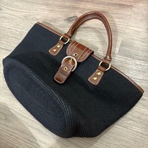 Amanda Smith Purse Black Brown Crochet Straw Handbag Nautical Classic Preppy