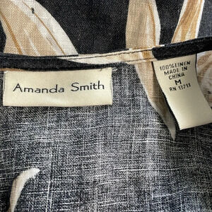 Amanda Smith Sleeveless Floral Blouse 100% linen size medium