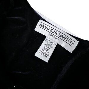 Amanda Smith Velvet Velour Midi Dress Black Button Front Size 18W Soft 80s VTG