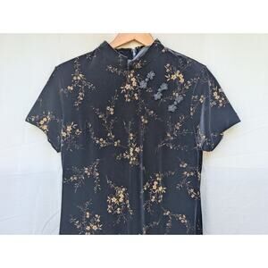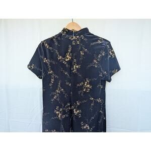 Amanda Smith Vintage 90s Black Velvet Cheongsam Style Sheath Dress Sz 12P Midi