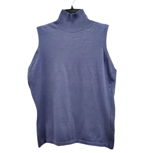 Amanda Smith Women's Vintage Steel Blue Silk Blend Sleeveless Mock Neck Shell M