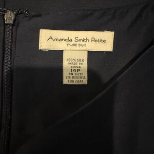 Amanda Smith pure silk shift dress with matching blouse size 14p/LgP navy blue