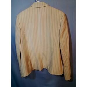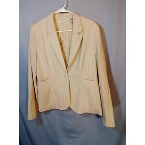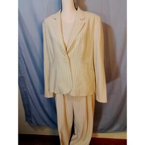 Cream and gray pin strip suit. Perfect power suit for women. Blazer and slacks are both the same size and lined.