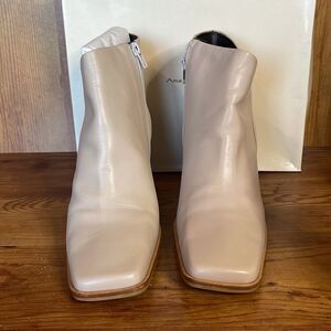 Amanda Smith Women’s Beige Ankle Booties, size 10m, Block Heel, Heel height 3.5”, side zip, new in original box