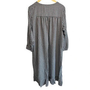 Vintage Christmas Nightgown. 100% Cotton. Red & Green Plaid, smocked collar, Long sleeves. Lace trim on cuffs, ruffled bottom, velvet ribbon.