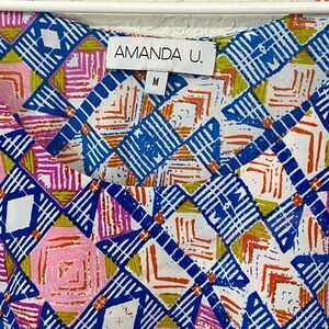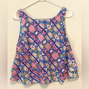 Amanda Uprichard `100% Silk Tiered Sleeveless Geometric Pattern Top Size Medium