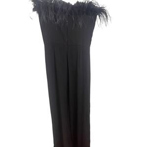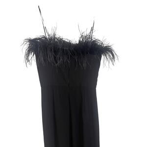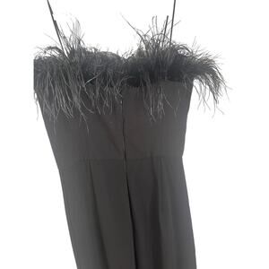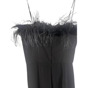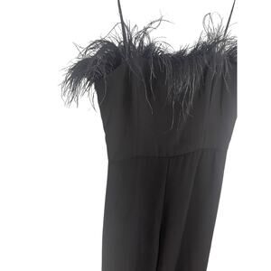 Amanda Uprichard Amiah Jumpsuit Ostrich Feather Trim Classy Witchy Black Size S
