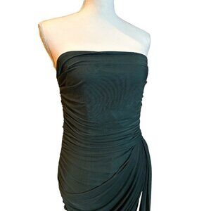 The kind of easy and flattering dress you'll be reaching for all season long.This strapless mini dress features ruched detailing throughout the back, a draped front with tie detail, and back zipper closure. Perfect for any event this season!