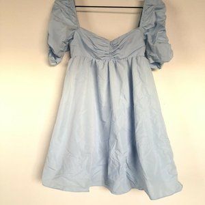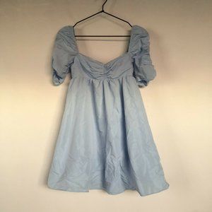 Amanda Uprichard Ariana Dress Powder Blue Mini Puff Sleeve