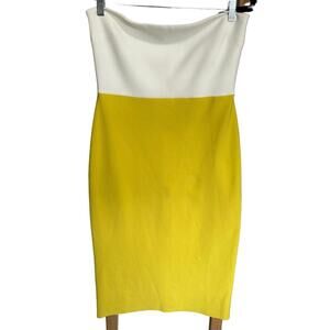 Amanda Uprichard Arie Dress Strapless Two Tone Midi Bodycon Yellow Size Large