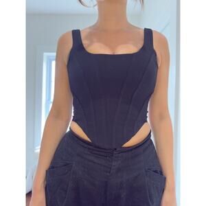 Structured corset-style tank top with boning, wide straps, smocked back panels. Flattering and chic. Excellent condition.