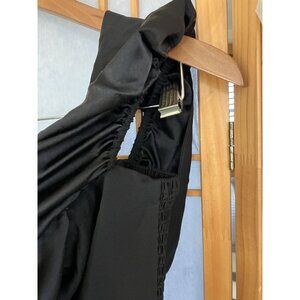 Amanda Uprichard Black Silk Mini Cocktail Dress Short Sleeve Ruffle Front, Small