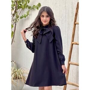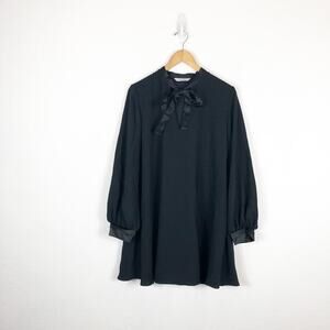 Amanda Uprichard Black Silk Neck Tie Puff Sleeve Elegant Tunic Mini Dress Large