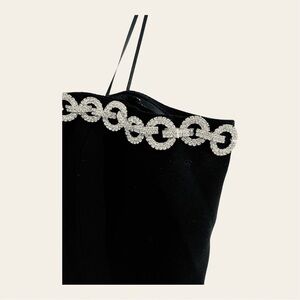 This gorgeous mini dress with crystal embellishments is perfect for your next event when you need that stand out little black dress.