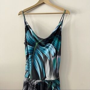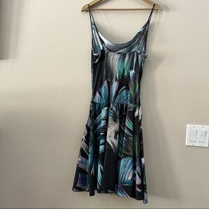 Amanda Uprichard Black and Blue Tropical Print Dress in size M