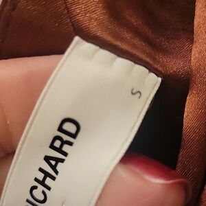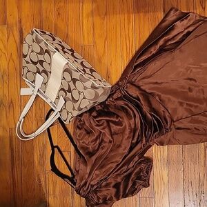 Amanda Uprichard brown Silk dress. Size small. Coach bag sold separately. The pics that show the dress in blue are to show style, not the color I am selling. Sold out on Revolve.