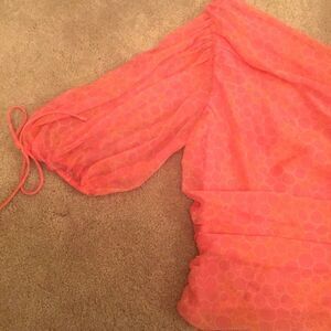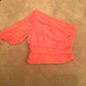 Stylish pink one-shoulder top with a chic design. Perfect for a trendy look.