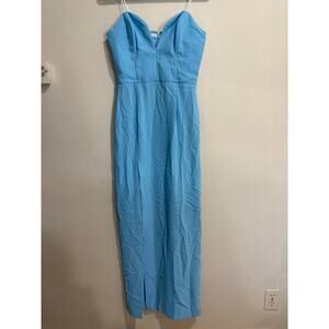 Amanda Uprichard Cherri Strapless Sweetheart Neck Slit Long Gown Pacific Medium