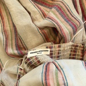 Amanda Uprichard Christie Linen Dress XS/P. Maybe worn once, if at all. Linen Positano Stripe, and keyhole detail in the front. Bust is stretchy, I’m 34B and it fit me well. Skirt is lined, length is 34”