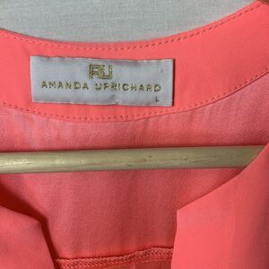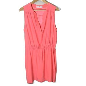 Amanda Uprichard Coral Pink Silk V-Neck Gathered Waist Sleeveless Dress Size L