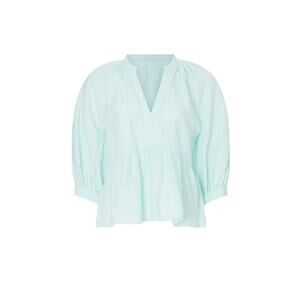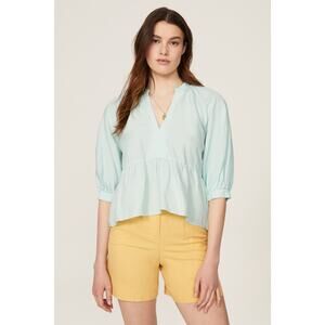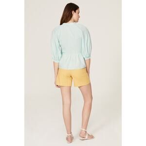 Amanda Uprichard Diego Light Blue Linen Blend Puff Sleeve Split Neck Top Size XS
