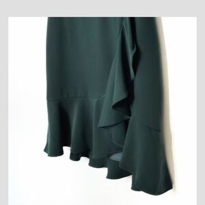 Amanda Uprichard Dress Ruffle Faux Wrap Hunter Green Mini Length Occasion Dress