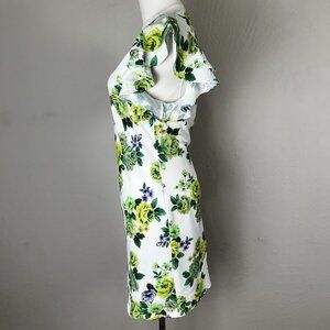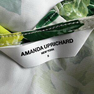 Amanda Uprichard Dress White Green Floral Size Small Fiori Mini Ruffle Sleeve