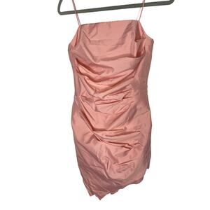 Amanda Uprichard Emelia Strapless Dress Ruched Asymmetrical Hem Pink Size Small