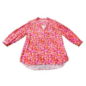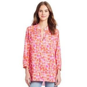 Elevate your wardrobe with this beautiful Amanda Uprichard blouse in a vibrant pink and orange print. The lightweight viscose material makes it perfect for all seasons, whether you're traveling, running errands, or attending a business meeting. The 3/4 sleeves add a touch of elegance.