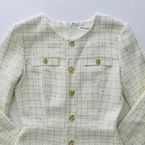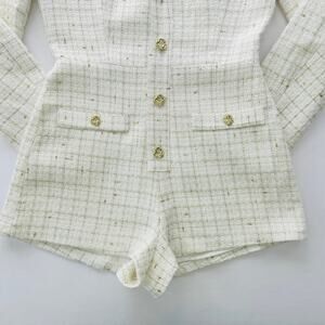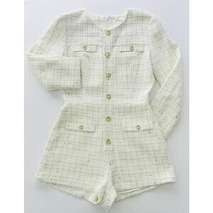 Amanda Uprichard Fallon Romper Tweed Cream Gold Small Party Wedding Date Night