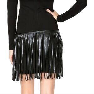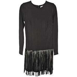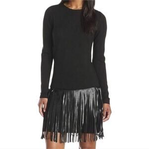 Amanda Uprichard Faux Leather Fringe Black Stretch Bodycon Mini Dress Small