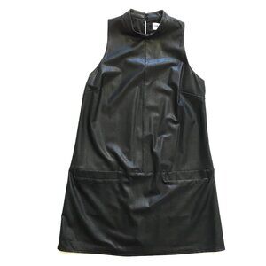 Amanda Uprichard Faux Leather Mini Dress Womens Medium Black Sleeveless Shift