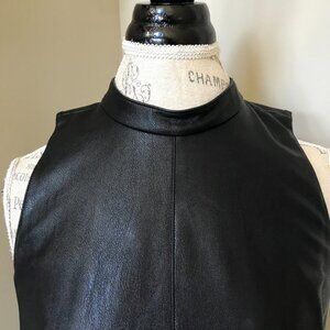 Women's Amanda Uprichard Faux Leather Mini Dress in a size Medium. Solid black color with a sleeveless and rear button keyhole finish. Originally $275. Fast Same Day Shipping!