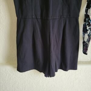 Features: Black ponte (60% Rayon, 33% Nylon, 7% Spandex). Romper. Long sleeves. Crew neckline. Hidden back zipper with hook-and-eye closure. Partially lined. 29" from shoulder to hemline.