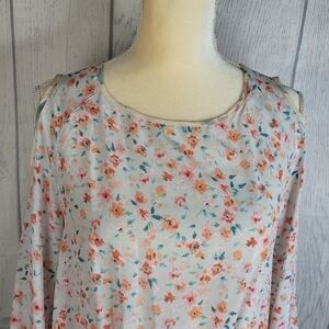Amanda Uprichard Floral Silk Cold Shoulder Blouse Size Medium
