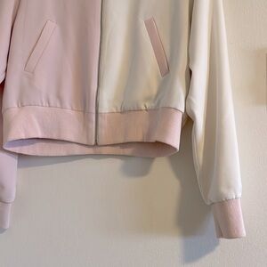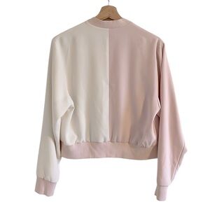 Amanda Uprichard Frankie Bomber Jacket Cropped Colorblock Pink Cream Small
