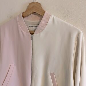 Amanda Uprichard Frankie Bomber Jacket Women’s Size Small Cropped Pink Cream