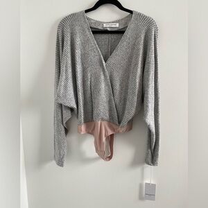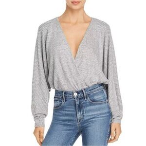 Amanda Uprichard Grey Timmy Rib Faux Wrap Bodysuit Size Small New With Tag