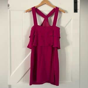 Amanda Uprichard cocktail dress with halter neckline and fun ruffles in a vibrant pink/magenta/fuschia hue. Perfect for weddings, nights out, homecoming dances. Like new.