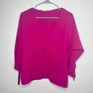 Amanda Uprichard Hot Pink 3/4 Sleeve V-Neck Blouse $180+tax retail *Medium