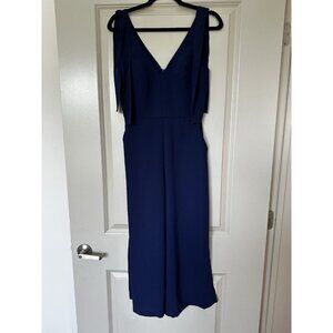 Amanda Uprichard Iris Jumpsuit Wide Leg Bow Tie Shoulders Blue Size P or XS