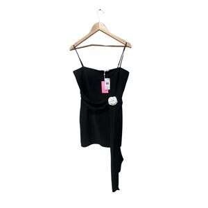 Elevate your evening in Amanda Uprichard's Isabel Dress. Embrace the night in sleek black, body-hugging allure. Draped fabric and a contrasting rosette at the hip create a romantic cocktail dress, perfect for a night out.