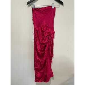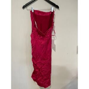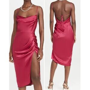 Amanda Uprichard Jasalina Silk Sleeveless Slit Ruched Midi Dress Persian Red S