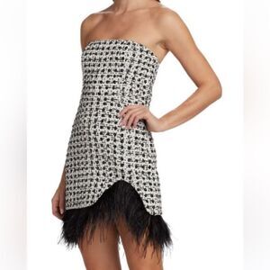 Amanda Uprichard Jazz Dress Kelly tweed rhinestone feather trim Revolve New S