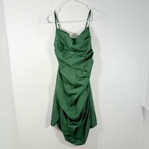 Amanda Uprichard Laconia Cypress Green Strappy Back Ruched Mini Dress Medium